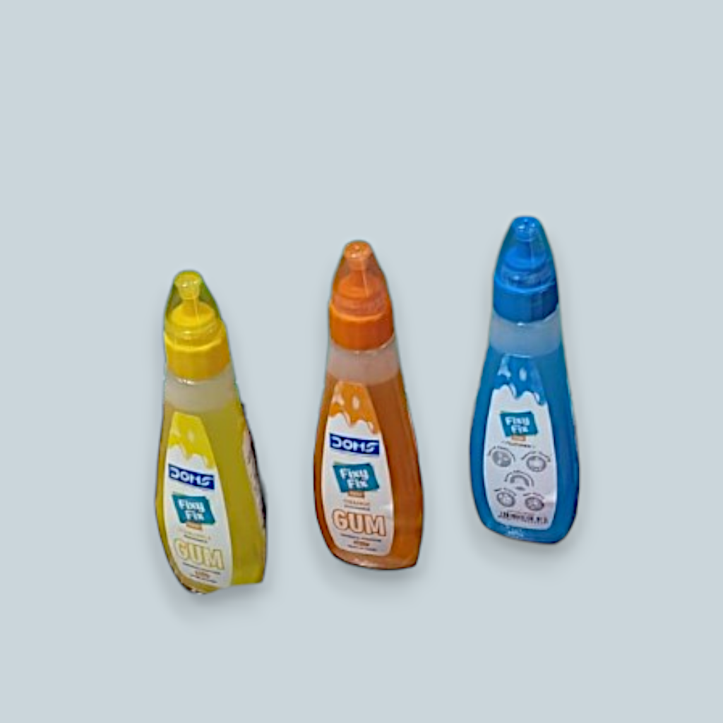Adhesives include glue sticks, liquid gum, fevicol, and double-sided tapes. These are vital for sticking documents, repairing tears, or completing craft work.